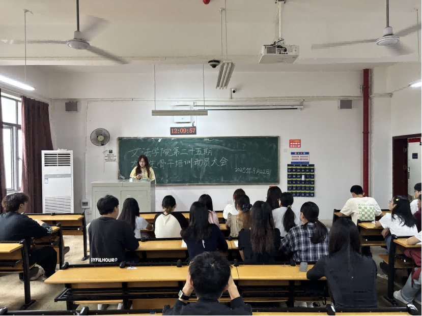为深入贯彻落实习近平总书记关于青年工作的重要思想以及对新时代团员队伍建设的重要指示要求,扎实推进团校工作部署,文法学院于2025年9月22日在二教2221教室召开第二十五期大学生骨干培训动员大会。本次会议由文法学院团委组织部副部长张雨洁主持,第二十五期大学生骨干培训班全体学员参加本次会议,文法学院团委组织部部员则通过线上会议同步参加。