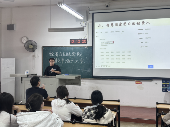 会议伊始,主持人明确了各级团支书的对接负责人,构建起层级清晰、衔接有序的工作机制。随后,经济与金融学院学生会主席谭聂迟受邀为25级团支书详细讲解了团日活动录入的具体流程,并在讲话中强调,团支书工作要“心比针细”,认真核查信息填报是否准确,持续关注同学们的“智慧团建”动态,并鼓励大家珍惜培训机会,以高度的责任感和使命感提升自我能力。