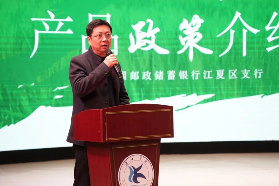 邮储银行江夏区支行副行长郑庆讲解高校学生青创贷相关政策。