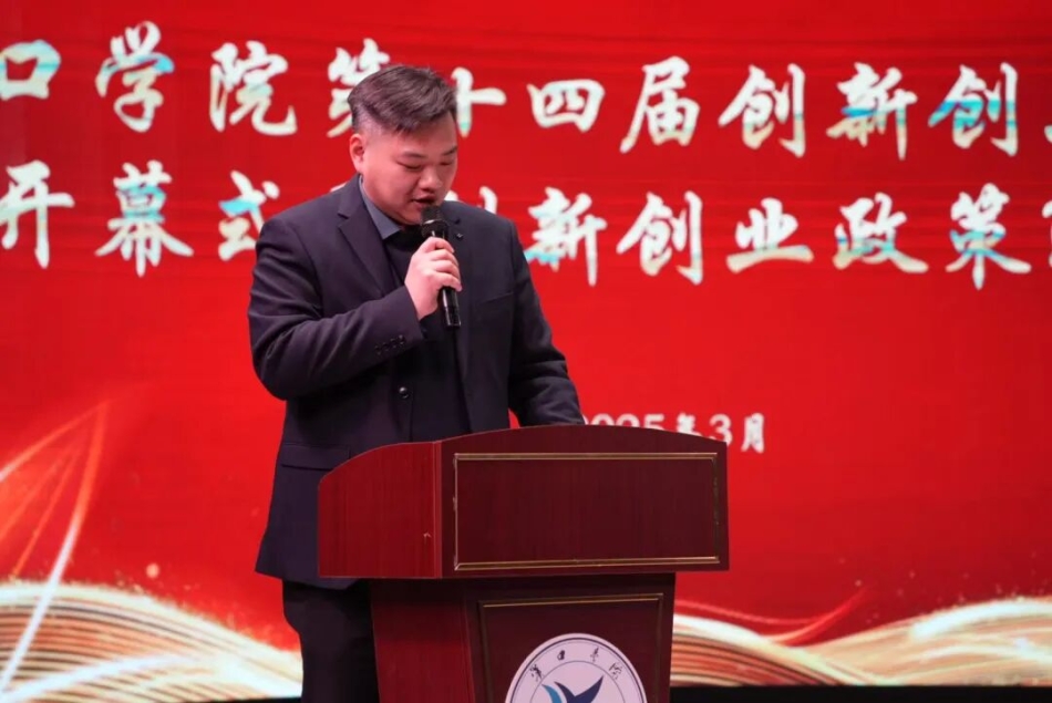 由刘怡国校长宣布第十四届创新创业文化节开幕。“在我看来,人生并非一帆风顺的爽文故事,而是一段充满挑战与突围的旅程。那么,究竟是什么助力他在这条道路上勇往直前、披荆斩棘呢?答案正是勇气。”刘校长引用小米集团雷军在《勇气》演讲中的话语。鼓励同学们在这个充满机遇与挑战的时代,创新创业需要不懈地探索与实践。希望同学们以此次开幕式为起点,在创新与创业的征途上不断前行,为实现个人梦想与人生价值而努力奋斗。