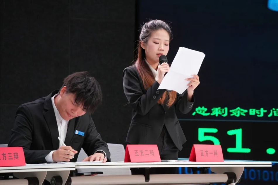 在人工智能技术飞速进步的今天,AI为我们的日常生活带来了极大的便利,但同时也引发了一些负面效应。本次开幕式经济与金融学院和传媒学院也就“AI教育是否会导致学生独立思考能力的衰退”为论题为我们带来了一场精彩的辩论赛。