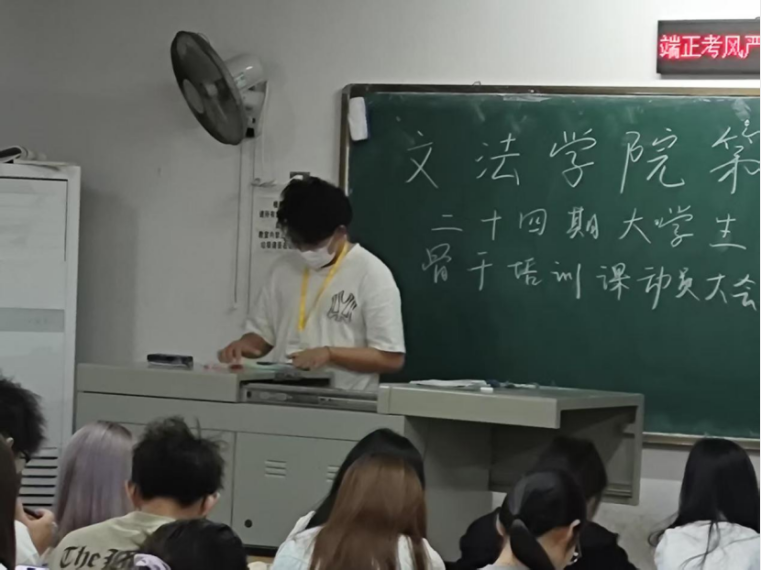 为深入贯彻习近平新时代中国特色社会主义思想,持续加强团组织自身建设,引导青年坚定不移听党话、跟党走,为造就一批用马克思主义中国化最新成果武装的马克思主义者,文法学院于2025年5月22日在2213教室召开了第二十四期大学生骨干培训动员大会。本次会议由文法学院团委组织部副部长季子傲主持,第二十四期大学生骨干培训学员以及文法学院团委组织部全体部员参加本次会议。