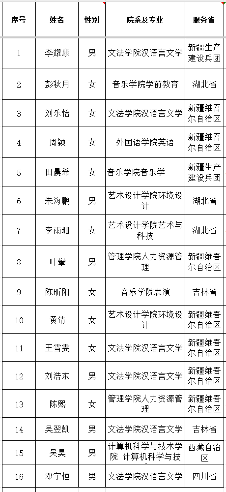 2025年西部计划志愿者公示名单