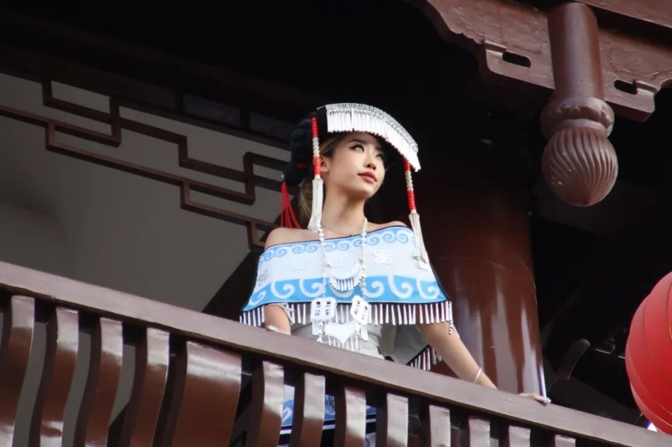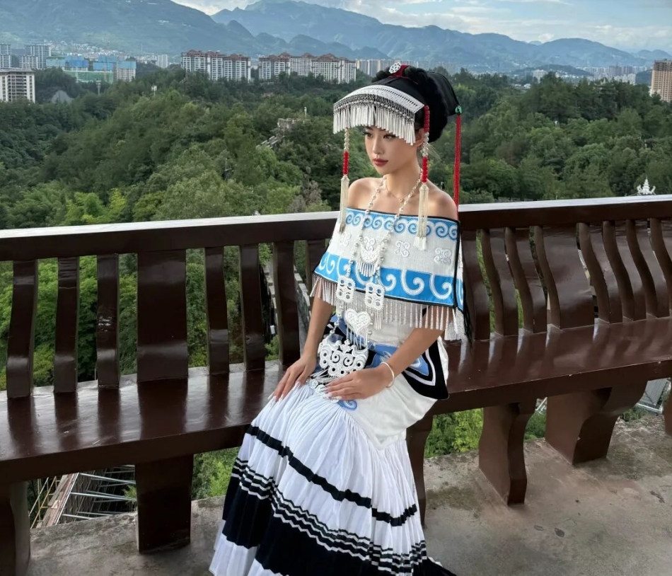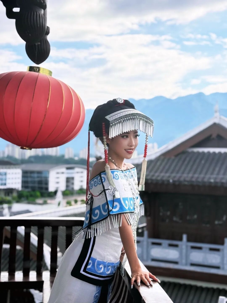 另一队员身着彝族服饰,体验民族文化多样性。白蓝彝族女子服饰以白色与蓝色为核心色调,是彝族“白彝”支系的重要文化标识,被誉为“穿在身上的史诗”。其服饰体系融合自然崇拜、祖先记忆与精湛工艺,形成独特的美学语言白蓝彝族女子服饰不仅是审美表达,更是承载迁徙史诗、万物有灵信仰的活态遗产。当代非遗传承中,传统纹样嫁接现代设计(如刺绣旗袍),使千年图腾在全球化语境中焕发新生。