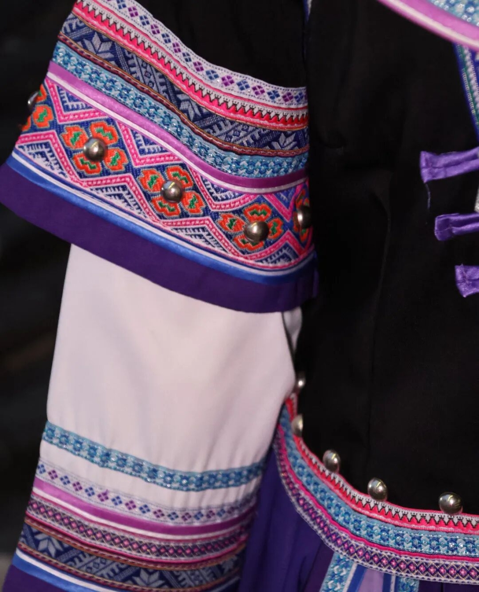 在西兰卡普生产基地,队员身着土家族传统服饰,其中最引人注目的是衣装上点缀的西兰卡普花纹。这些纹样主要装饰在衣服的襟边、袖口、裙边等位置。西兰卡普的花纹以几何图案为主,特点非常鲜明。这些装饰在队员服饰上的西兰卡普花纹,不仅仅是美丽的装饰,更是土家族文化的重要标志,承载着他们的历史记忆和对美好生活的祈愿。