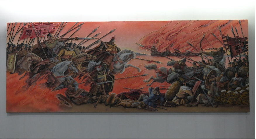 沿着历史的脉络前行,“州陵风韵(西周至元代)”展区则为队员们展现了一段更为漫长而丰富的历史进程。乌林寨、白骨塌、大、小城壕等历史遗迹的相关展示,让队员们的思绪飘回到了那个金戈铁马的时代。左右三国格局的赤壁大战的主战场便在洪湖乌林长江段,赤壁之战的硝烟虽已散去千年,但在这里,队员们仍能通过那些出土的青铜剑、戈、矛等文物,想象到当年战场上的激烈厮杀,感受到历史的沧桑巨变。这些文物不仅是历史的见证,更是中华民族智慧和勇气的象征。