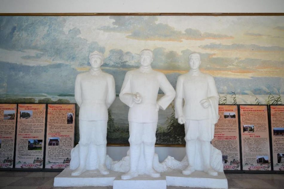踏入博物馆,目光所聚皆是对三大雕像的好奇与崇敬,他们分别是段德昌(左)、贺龙(中)、周逸群(右)三人雕像。这三位都是湘鄂西革命根据地的重要创始人,雕像寓意着他们对革命事业的精心谋划和卓越领导,体现了他们之间的革命友谊和为实现革命理想而共同奋斗的精神。