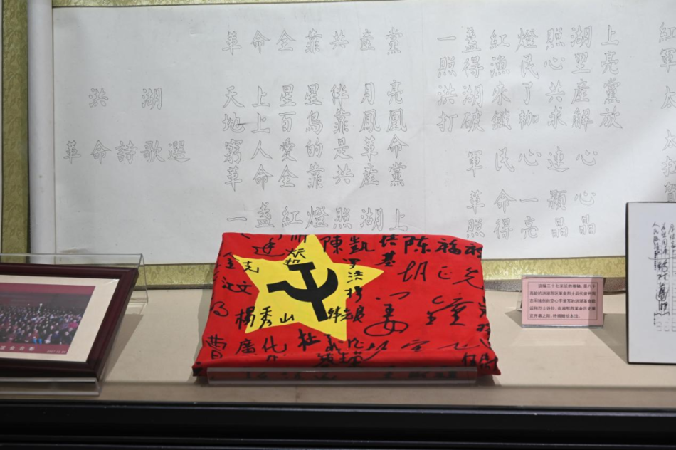 西侧王震题名的“湘鄂西苏区革命烈士馆”内,100位县团级以上烈士的遗物与事迹震撼人心:周逸群“笔杆子变枪杆子”的革命抉择、段德昌“砍头不要紧”的绝笔信、“贺家三姐妹”投身红军的巾帼豪情……“不屈五豪杰”“洪湖红三香”等专题展区里,一封烈士家书中“舍小家为大家”的字迹早已模糊,却仍让成员们湿了眼眶。