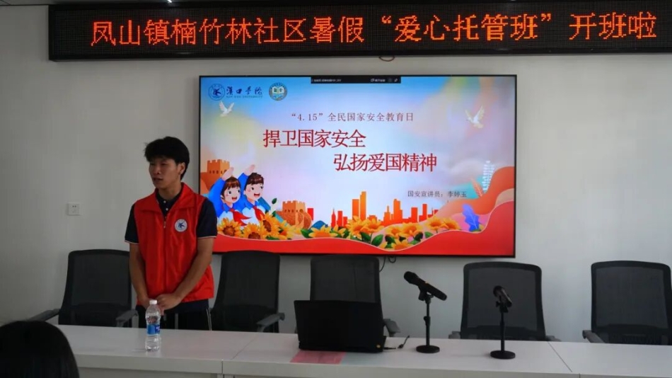 为深入贯彻落实总体国家安全观,深化青年学生及社区青少年的国家安全意识教育,引导青少年群体厚植家国情怀、增强维护国家安全的责任感与使命感,2025年7月15日上午汉口学院“栗乡萤火·汉院之光”志愿服务队走进湖北省黄冈市罗田县凤山镇楠竹林社区为“暑期托管班”的小朋友们开展国家安全宣讲活动。主讲人姚瑞将课程内容与趣味游戏相结合,同时结合小朋友们的接受能力进行课程讲解。对小朋友们进行了有奖提问。让小朋友们能更透彻地理解国家安全,同时也能够帮助小朋友们提前认识这些潜在风险,学会理性应对,避免因无知而受到伤害,更好地适应时代发展带来的安全挑战。