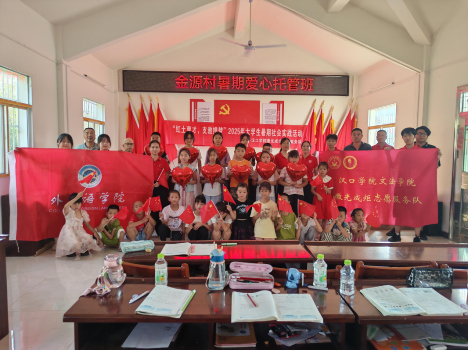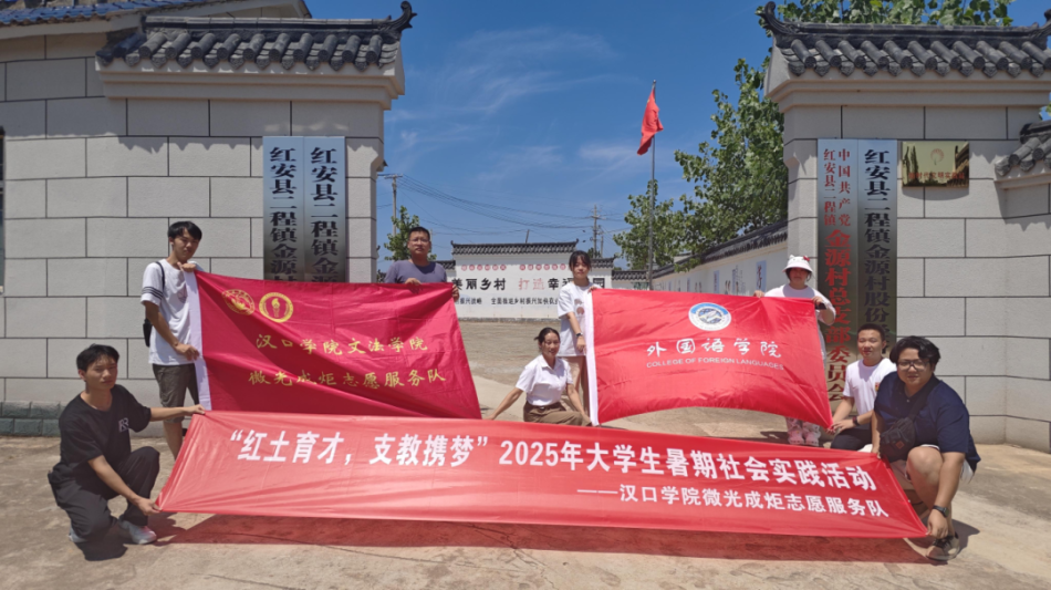 为弘扬志愿者精神,提升学生综合素养,应汉口学院扶贫工作队邀请,由文法学院与外国语学院联合组建的“汉口学院微光成炬志愿服务队”,于2025年7月14日赴红安县二程镇金源村,开展为期两周的“暑假学堂”公益支教活动