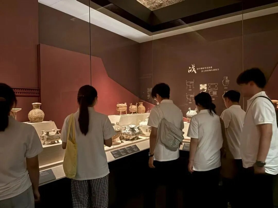 离开烈士陵园,实践团来到了宜昌博物馆。一进馆,实践团成员们就被丰富的展品吸引。从远古西陵展厅的石器、陶器,到巴楚夷陵展厅的青铜器,再到千载峡州展厅展现的历史变迁,每一件文物都承载着深厚的历史底韵。