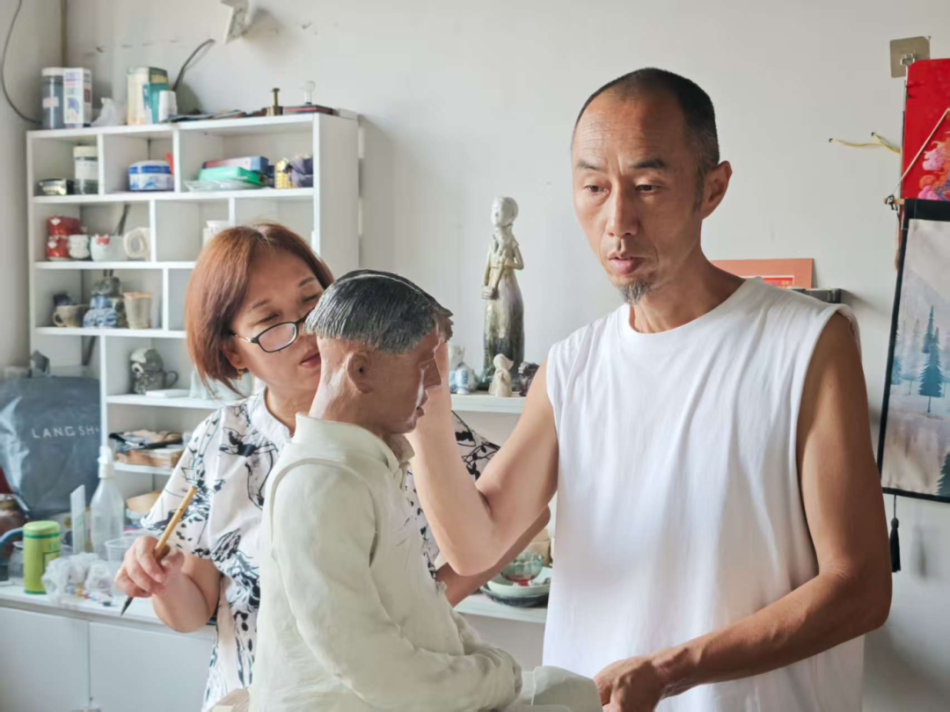 2025年6月28日,我们有幸采访中国陶瓷美术大师陈培火老师。一进创作工作室,陈培火老师正与他的学生赶制参展内蒙古的作品,从打磨陶坯到反复描画细节,每一道工序都凝结着时间的重量。陈老师说:“景德镇是世界级的陶瓷圣地,这里创业成本低、氛围包容,匠人之间乐于分享经验。”他特别鼓励年轻人:“带着想法来,肯吃苦、敢交流,这片土壤会成全你的热爱。”访谈中,我们记录了陈老师与学生共同创作参展作品的场景:打磨、上色、修改、再雕琢,每一个细节都凝聚着匠人对技艺的执着。这种传承,恰如青年三下乡的使命——在基层实践中,将专业所学与文化传承结合,让青春在泥土中绽放光芒。