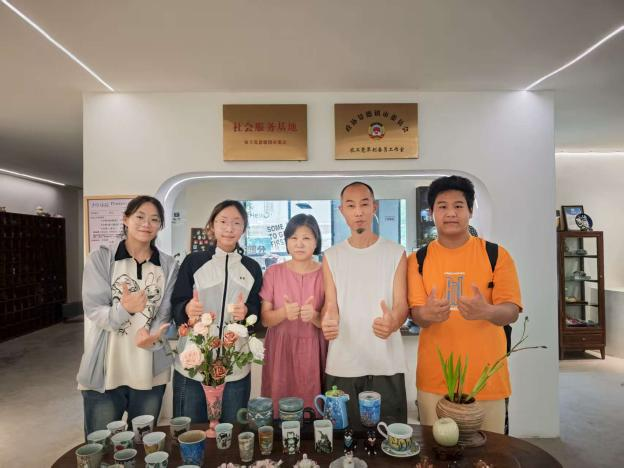 在陶阳里扎根的四十多位瓷器手工技艺代表性传承人及三百多名学徒,通过产教融合等方式,将古老技艺与匠心精神薪火相传。这种传承,不仅是对技艺的尊重,更是对文化的敬畏。实践团亲眼目睹了传承人在案桌前专注地制作瓷器的场景,从拉坯、修坯到绘制图案,每一个环节都倾注了他们的心血。我们采访到青花传承人严稳炉,他表示,“传承陶瓷技艺不仅是对祖先智慧的尊重,更是对文化的敬畏和责任。”我们实践团队用镜头记录下了传承人和学徒们的工作场景和交流互动,希望通过宣传片,让更多人看到这份坚守和传承的力量,激励更多年轻人加入到非遗技艺传承的行列中来。