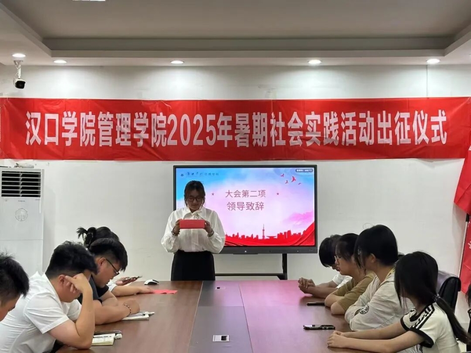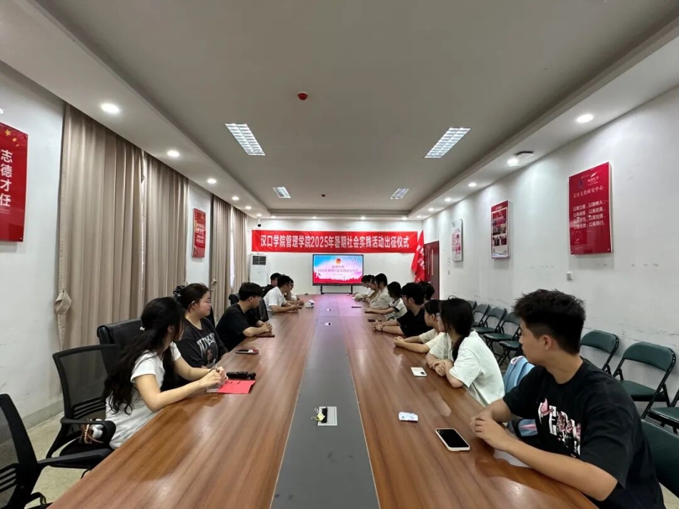 为引导青年学生在社会实践中践行使命担当,2025年7月20日,汉口学院管理学院暑期社会实践出征仪式于二号教学楼0217会议室举行。管理学院党总支书记张洪东、分团委书记胡悦、辅导员赵英杰出席,暑期社会实践志愿者代表参与。
