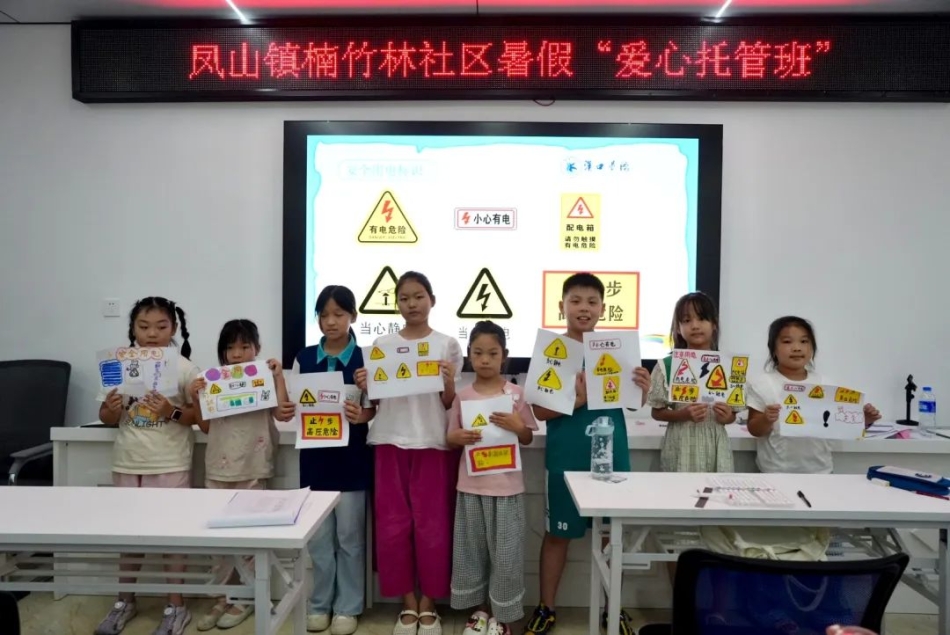 在暑期学堂爱心托管班的最后一周,楠竹林社区成为我们的服务阵地。本周课程内容丰富多元,我们精心安排了普法教育、交通安全、用电安全等常识类课程,以及课桌舞、“情感小怪兽”等特色活动。