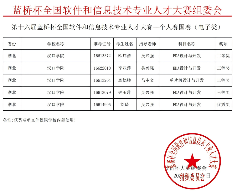 喜报! 汉院学子在第十六届蓝桥杯国赛中再创佳绩