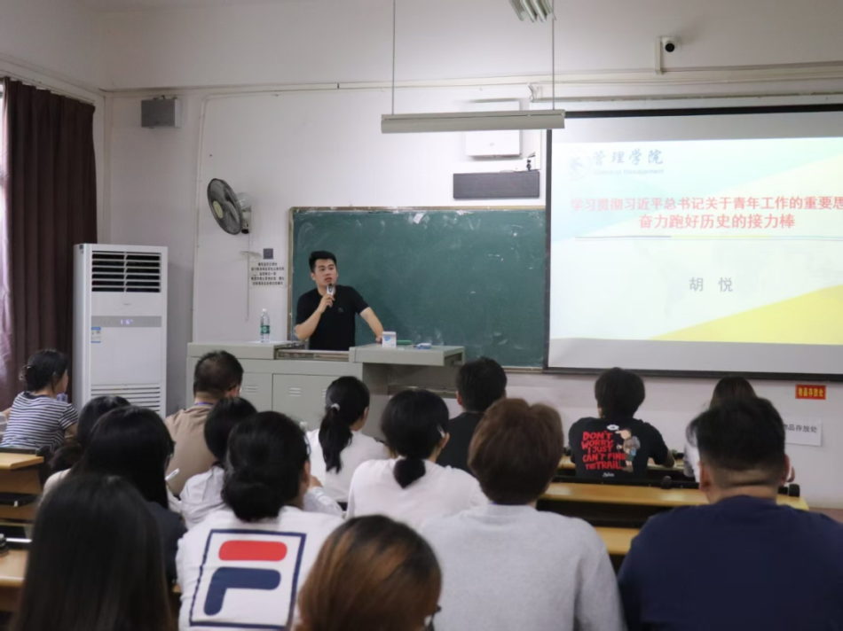 在政治思想理论学习中,管理学院分团委书记胡悦强调了学习习近平总书记关于青年工作重要思想的必要性。他指出,学生干部应积极向党团组织靠拢,在思想和学习上努力奋进,树立正确的青年观。同时,要学会结合学院专业特色,开展创新型活动,奋力跑好历史的接力棒。