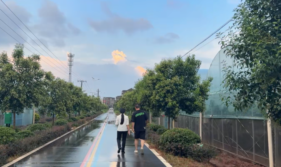 在参与村庄的各项活动过程中,我们真正融入了这片土地。在农业大棚里帮忙时,我们跟着村民们一起劳作,感受着泥土的芬芳和劳动的快乐。当看到那一串串饱满的葡萄在阳光下闪烁着诱人的光泽时,我们心中充满了成就感。那一刻,我们不再是局外人,而是建国村这个大家庭中的一员。