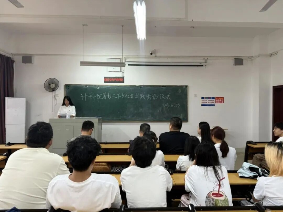 此次出征仪式的顺利举行,不仅为暑期社会实践活动拉开了序幕,更激发了学子们投身基层、服务社会的热情。愿计科院学子以昂扬姿态展现青年风采,在实践中践行青年的责任担当,预祝我院2025年暑期三下乡社会实践活动取得圆满成功!