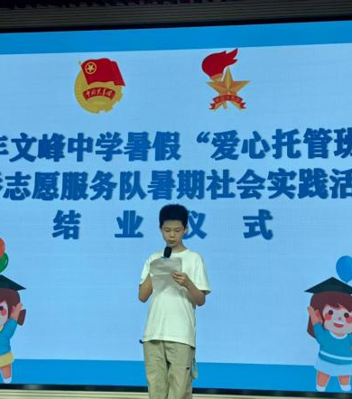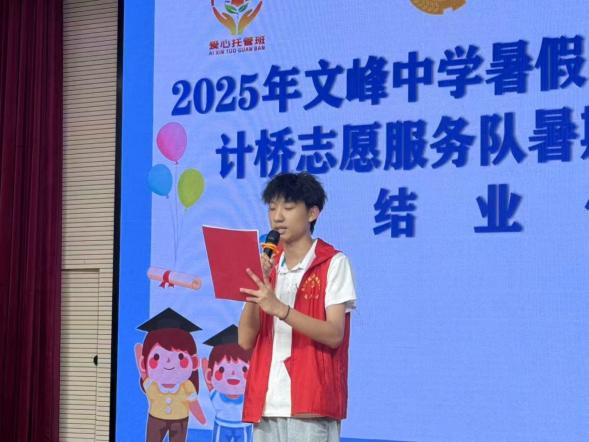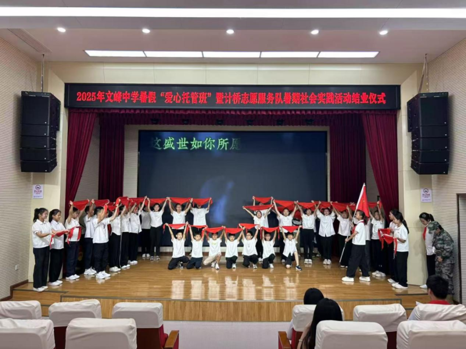 盛夏的风吹过校园,带着离别的气息,也承载着满满的收获。2025年文峰中学暑期“爱心托管班”暨计桥志愿服务队暑期社会实践活动结业仪式于7月25日在学校报告厅温情举行。