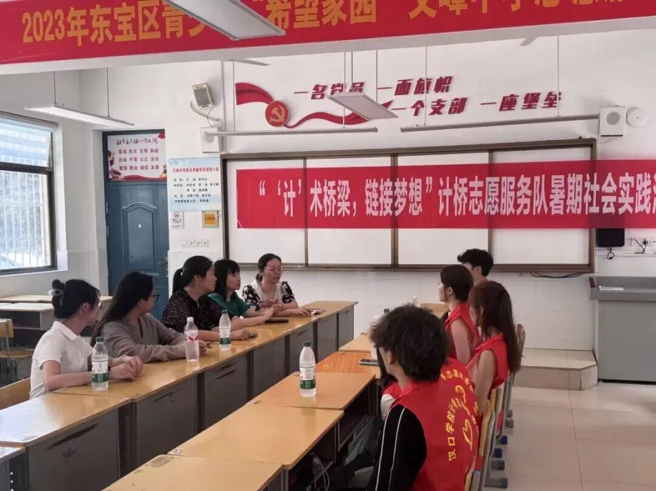 7月1日上午,我院吴聪颖老师、韩思婕老师带领计桥志愿服务队10名志愿者前往荆门市开展2025年暑期社会实践活动。下午16:00,实践队联合文峰中学在活动室举行“‘计’术桥梁,链接梦想”暑假托管班见面筹备会。本次托管以“专业赋能、贴心陪伴”为宗旨,为学生提供知识拓展、兴趣培养、安全守护等多元服务。我院学生秉持教育初心,搭建成长桥梁,期待以真诚付出,为素质教育实践注入新活力,共同开启有意义的夏日篇章。