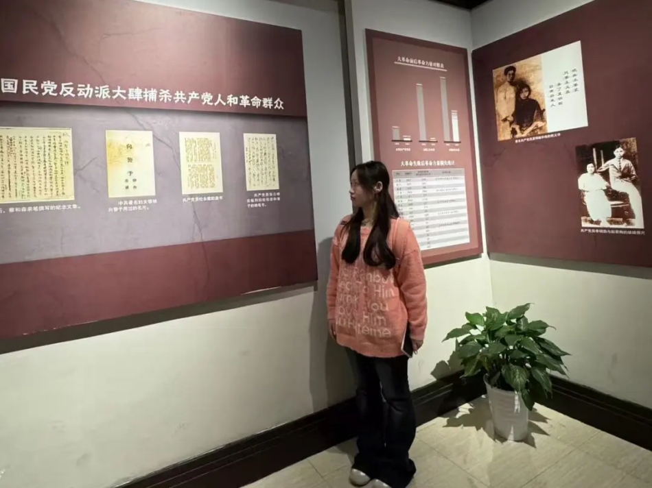 站在八七会议旧址的展陈前,一边是历史展板里先辈们的铿锵抉择,“枪杆子里出政权”的论断跨越百年依旧振聋发聩;一边是展柜中静静陈列的文物,每一件都是时光藏起的“红色密码”,诉说着那个危急时刻里共产党人的勇气与坚守。同学们感受着革命文化的独特魅力,这不仅深化了他们的思想,还让他们的政治立场更加坚定。