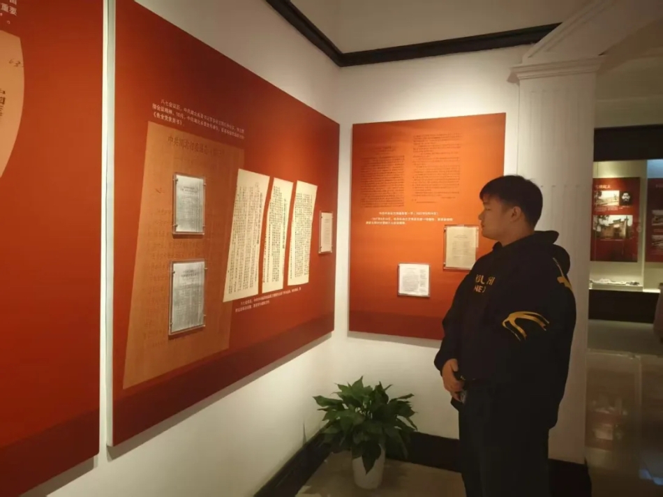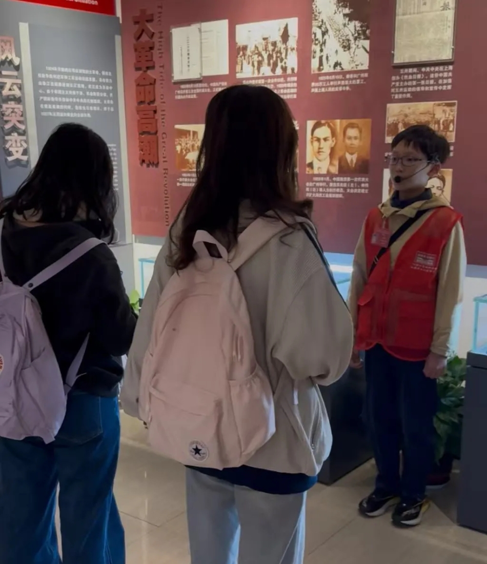 活动伊始,全体成员在庄严肃穆的纪念墙前整齐列队、怀着对革命先辈的缅怀与敬意,正式拉开此次思想政治教育实践的序幕。踏入这座见证历史转折的西式小楼,时光仿佛回溯至90余年前那个风雨如晦的年代。一幅幅泛黄的珍贵照片、一件件承载革命精神的文物史料、一个个生动还原的历史场景,无声诉说着那段惊心动魄的峥嵘岁月,让在场每一位同学都肃然起敬,不自觉放慢脚步、静心聆听。