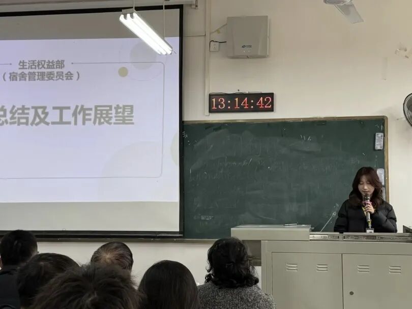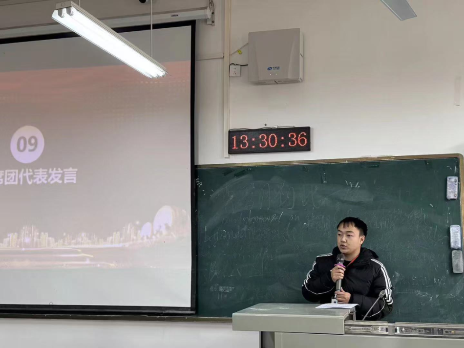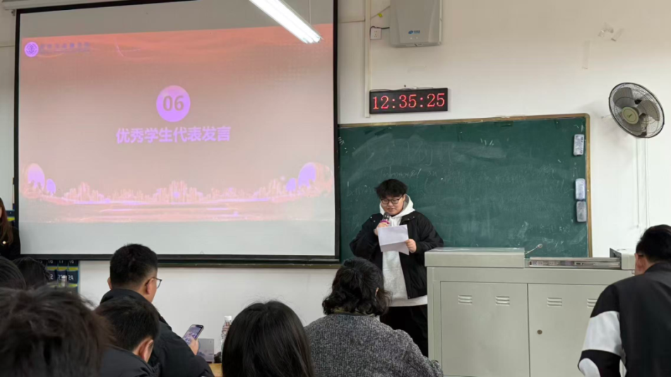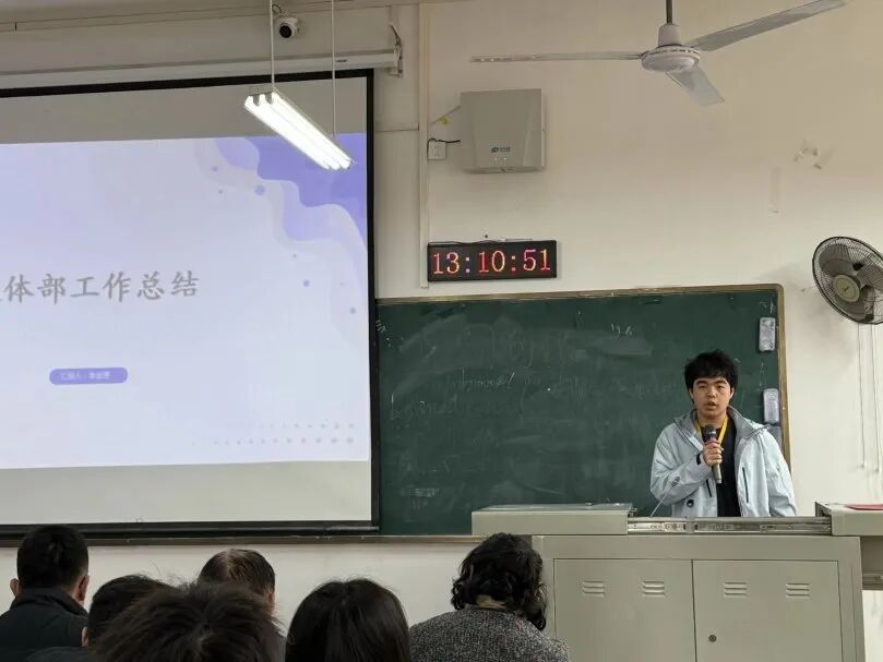 最后,主席团代表谭聂迟主席分享了自己在团学工作中的成长历程。他从个人能力提升、学习成绩进步、学科竞赛突破等方面,讲述了参与团学工作带来的蜕变,鼓励同学们主动参与各类活动,在实践中突破自我、收获成长。
