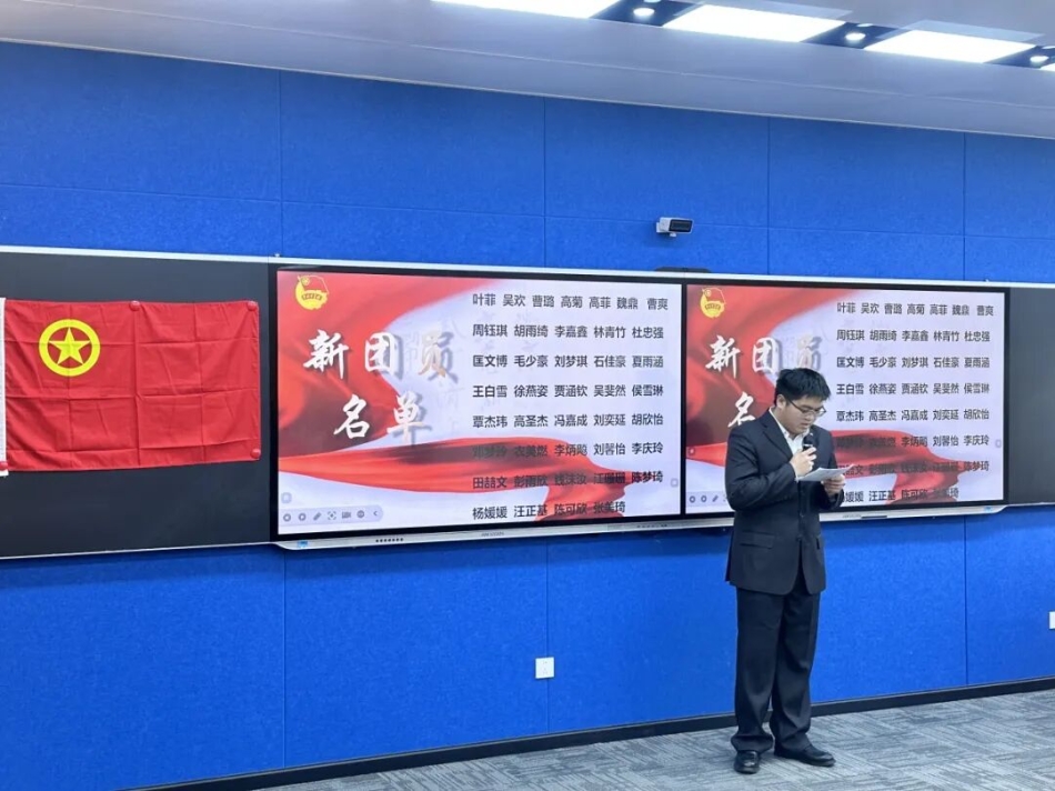 “光荣加入,青春启航。”主持人为大家公布了新团员名单。每一个新团员的名字,都代表着一份组织的认可,更代表着一份青春的担当。这些青年学子历经团课学习的思想淬炼、实践锻炼的意志磨砺与严格细致的考察筛选,终于在今日迎来身份的光荣转变,正式成为共青团大家庭的一员。