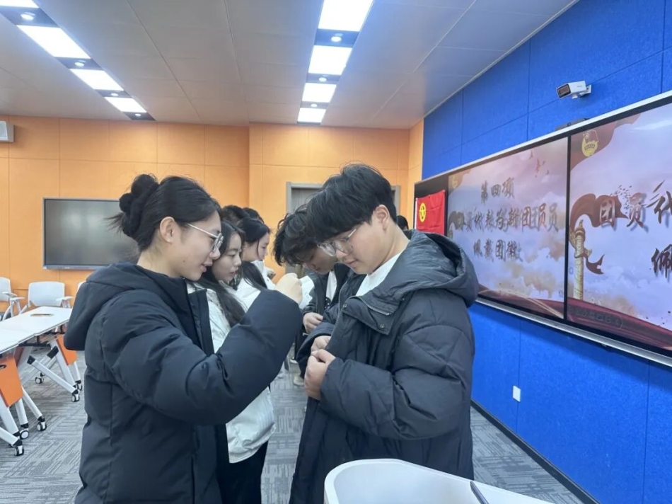 “一枚团徽,一份责任;一抹鲜红,一生信仰。”在热烈而持久的掌声中,团员代表手持团徽,为新团员们郑重佩戴。当闪亮的团徽定格在胸前,新团员们的脸上洋溢着掩饰不住的自豪,眼神中更透着坚定不移的信念。这枚小小的团徽,是荣耀的象征,更是责任的传递,承载着一代代青年接续奋斗的初心使命。