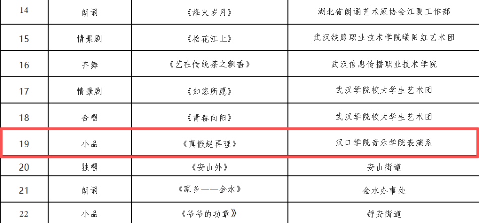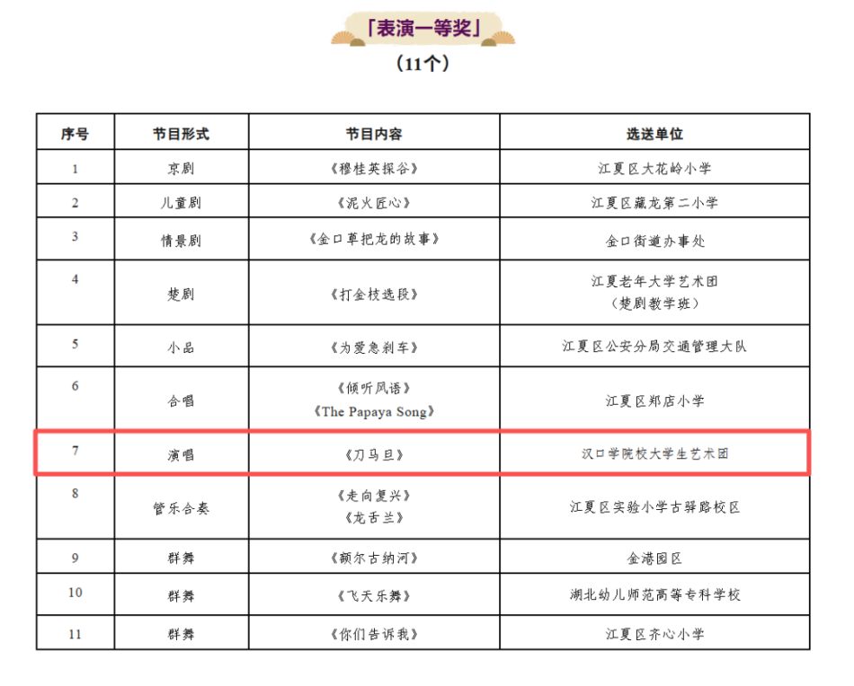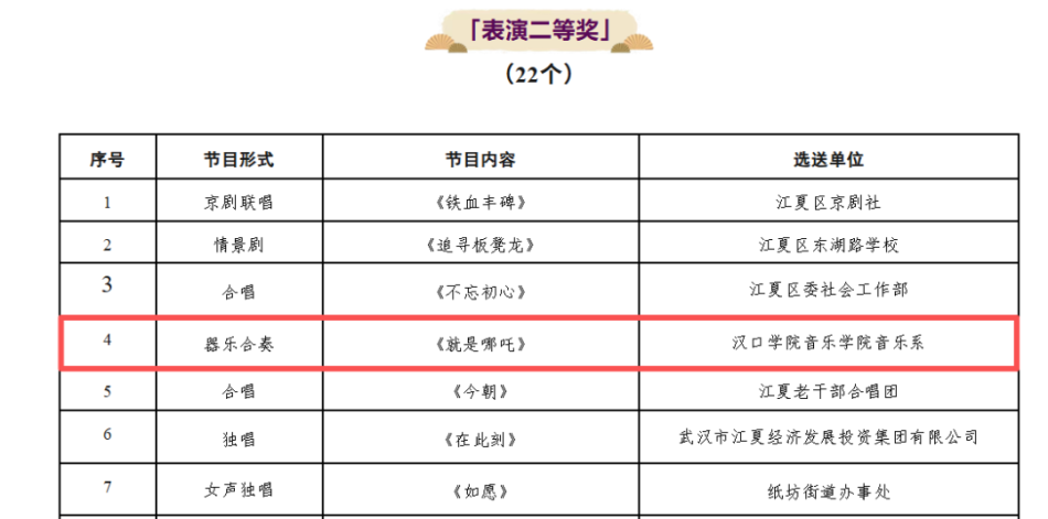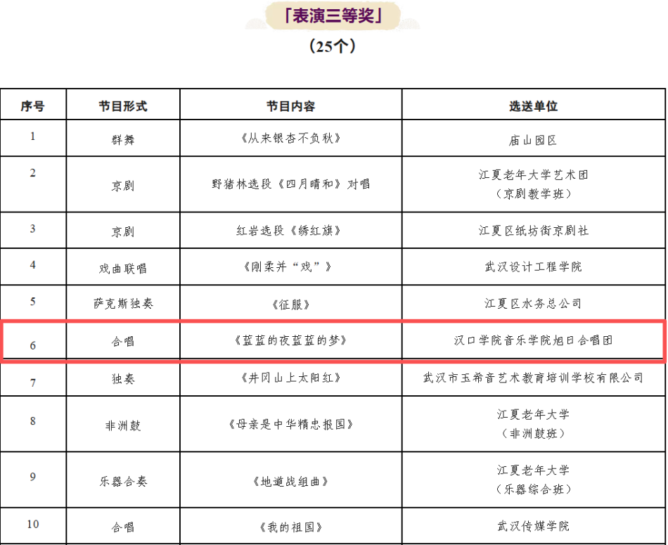 除此之外,汉口学院音乐学院多个节目亦斩获佳绩:表演二、三等奖,创作三等奖。