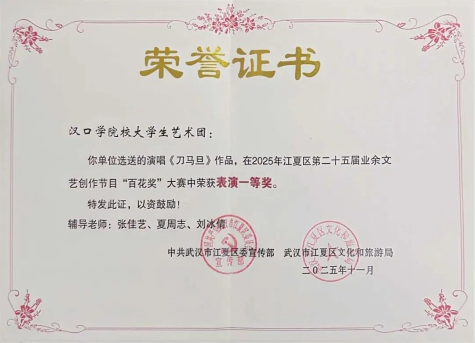 喜报 | 一等奖!汉口学院斩获江夏区第二十五届文艺创作“百花奖”